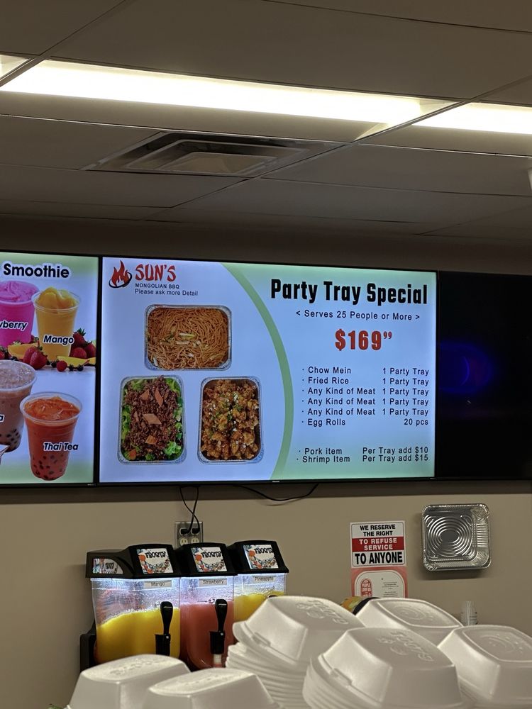 Welcome to Sun’s Mongolian BBQ, a delightful culinary gem located at 621 N Azusa Ave, Covina, CA. This eatery specializes in authentic Chinese cuisine, featuring an enticing array of vegetarian options that cater to diverse palates. The menu includes a self-serve Mongolian BBQ section, allowing you to choose from an assortment of fresh vegetables and proteins, including beef, chicken, pork, and shrimp. Customers rave about the quality and freshness of the ingredients, making it easy to craft a flavorful dish according to your preferences.